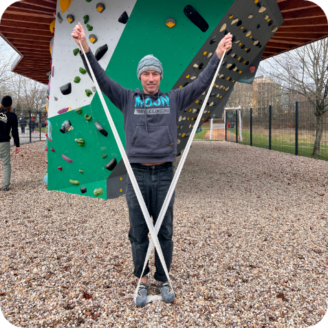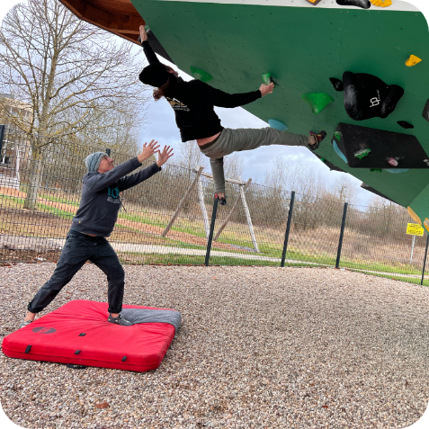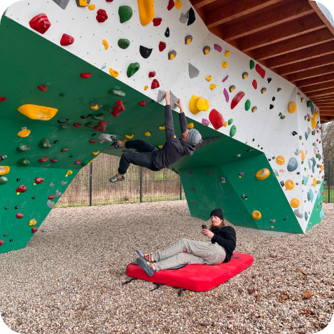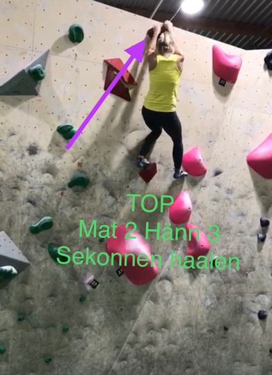 For a proper start on a bouldering problem, the climber has hands and feet on the marked start holds, and no part of the body is in contact with the ground. In a valid finish, both hands are in contact with the finish hold. The climber must be in control of the position and keep it for 3 seconds. Where and how the hands and feet are actually positioned on the start holds is up to the climber. Usually, a boulder problem uses all the way up the same color of holds. Before you start it’s helpful to be sure about the way, try to check out all the holds by watching. You are not allowed to touch them before you start, during competition.